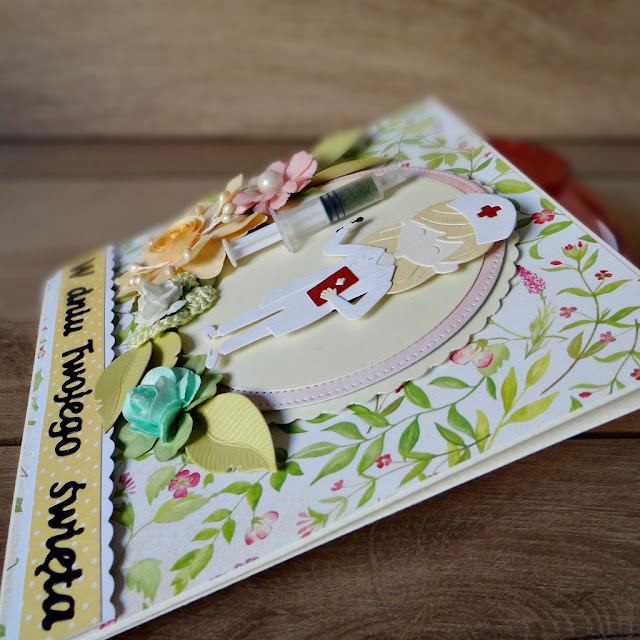 Lubię kartki na specjalne okazje. Czasem brak mi pomysłu, czasem pomysł pojawia się od razu. Choć najczęściej zdarza się że owy pomysł przychodzi na samym końcu, tuż przed ostatecznym czasem. Wtedy realizacja nie jest łatwa, ale z reguły udaję się zrobić wszystko na czas. Zobaczcie co udało mi się wyczarować na czterdzieste urodziny pewnej pielęgniarki. Zapraszam Was też do zobaczenia co moja MAMA zrobiła z tej samej okazji.